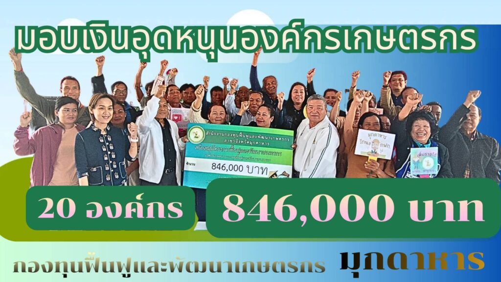 กฟก.มุกดาหาร มอบเงินอุดหนุนให้แก่องค์กรเกษตรกร 20 องค์กร รวม 846,000 บาท
